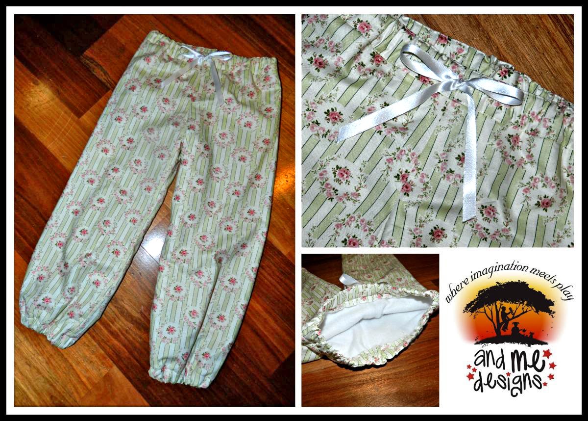 2) Baby/Toddler Harem Pants (click here) for sizes Newborn-2 & nappy (diaper) friendly.