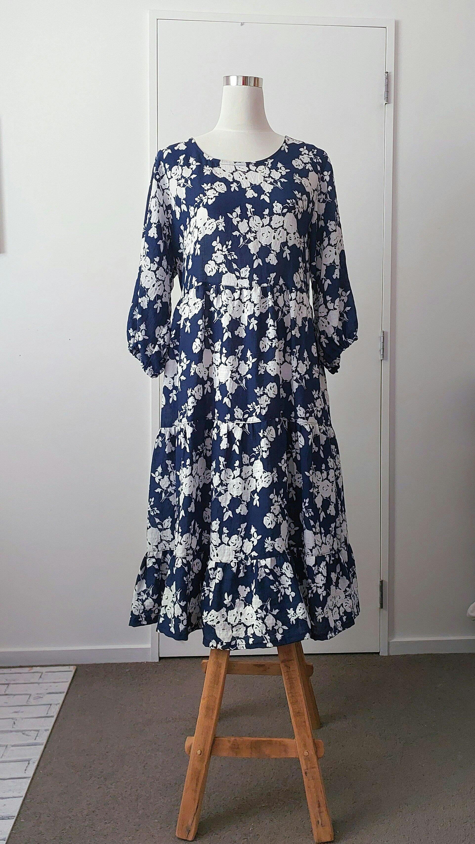 This dress sewing pattern features cropped bishop sleeves & sleeveless options, relaxed easy fit bodice & tiered skirt. Sew a top, mini, midi and maxi dress with this versatile sewing pattern. Oooh and there's pockets!!