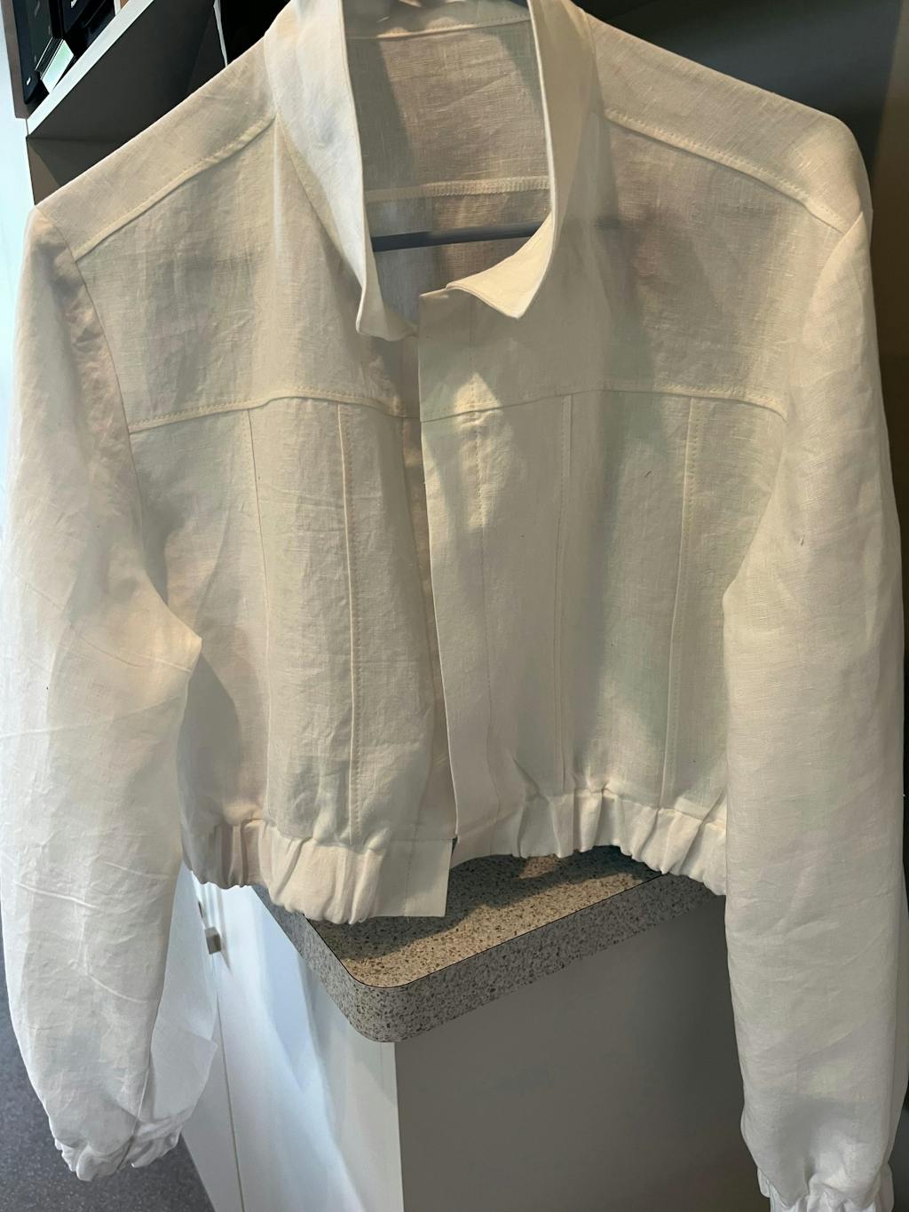 Designed for woven fabrics with a nod towards the classic denim jean jacket, we give you lots of choices. 2 hemlines - cropped & hip length. 2 sleeve styles & finishes - traditional button up cuffed sleeve & full sleeve with wide gathered cuff worn loosely at the wrist. 2 hem bands - plain & gently elasticated.
