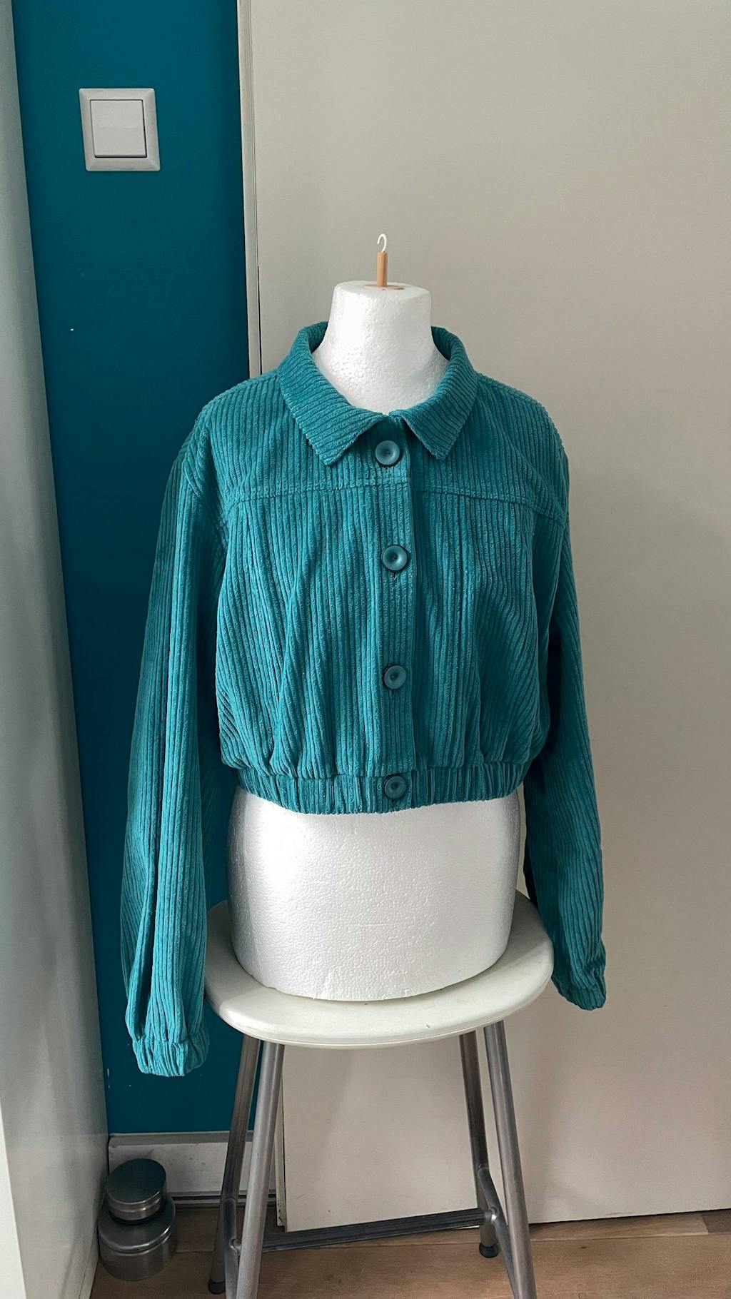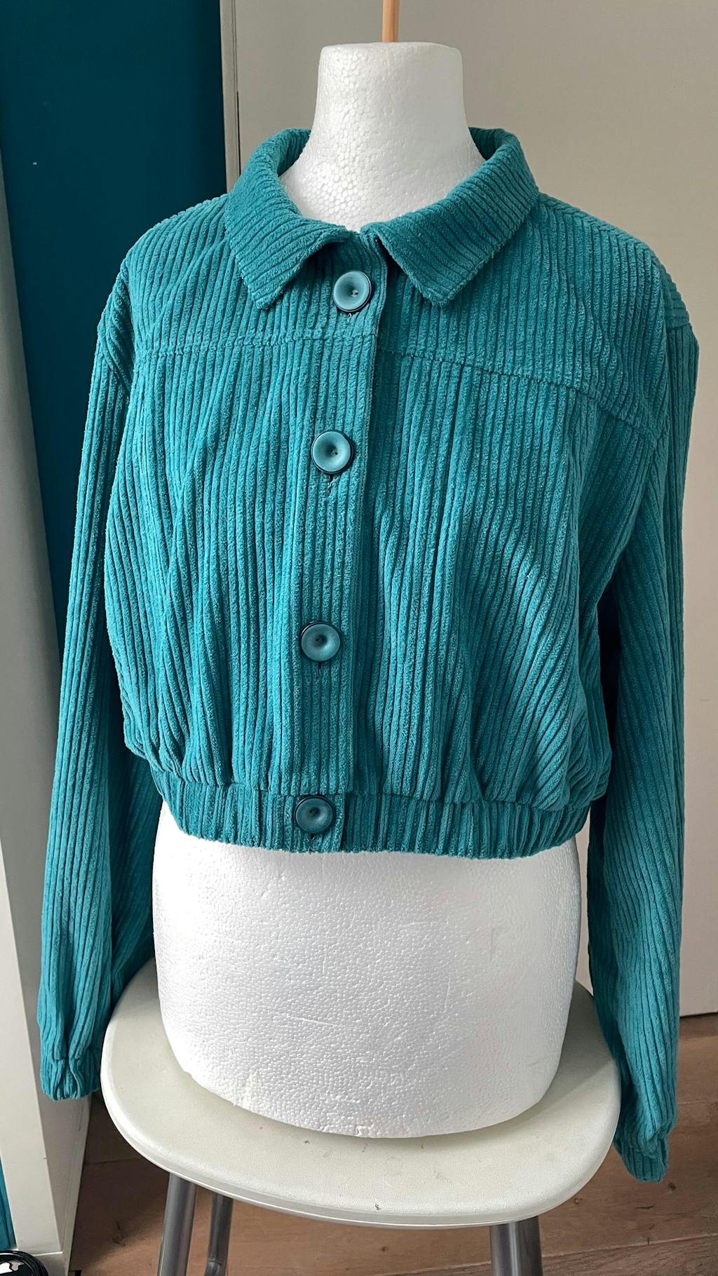 Looking at alle the examples others made and watching the introduction video of Kate of this pattern I decided to make the ultra cropped version. I’m very pleased with it. I made it in a border corduroy. I think I’m going to wear it a lot. I’m also thinking of making another one with a different fabric, with a different sleeve, and hem band so they are kind of family but look different. It is all possible with the same pattern, yeah!