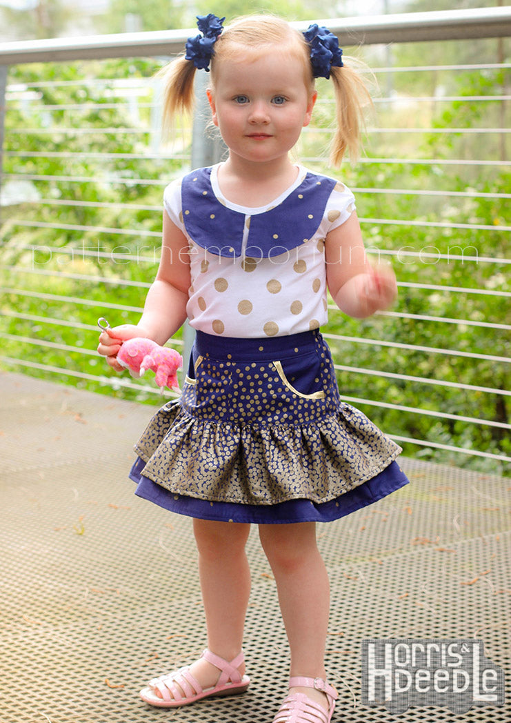 Our tiered Girls Ruffle Flip Skirt sewing pattern is an awesome combo of pretty & functional!