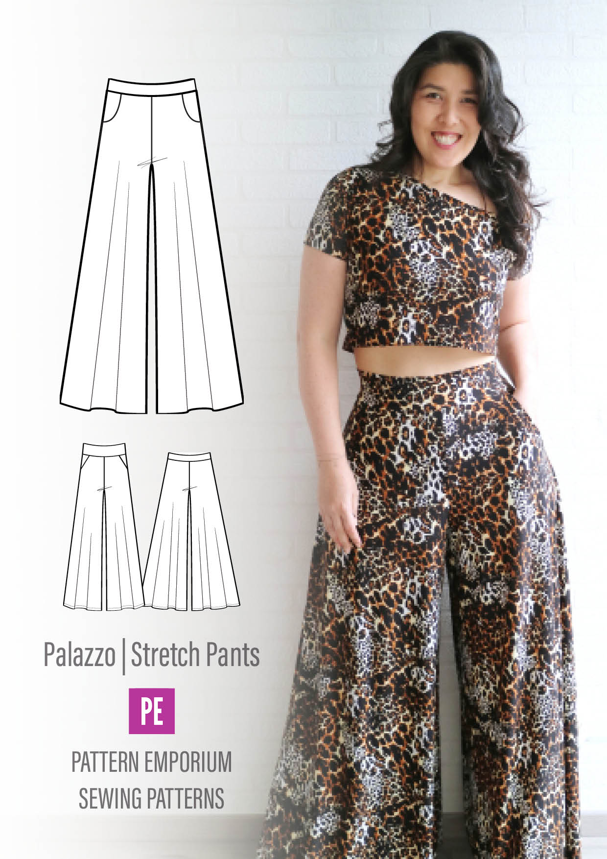 Comfortable like loungewear, yet chic like designer wear, our stretch palazzo pants sewing pattern boats the femininity of a skirt and practicality of trousers.