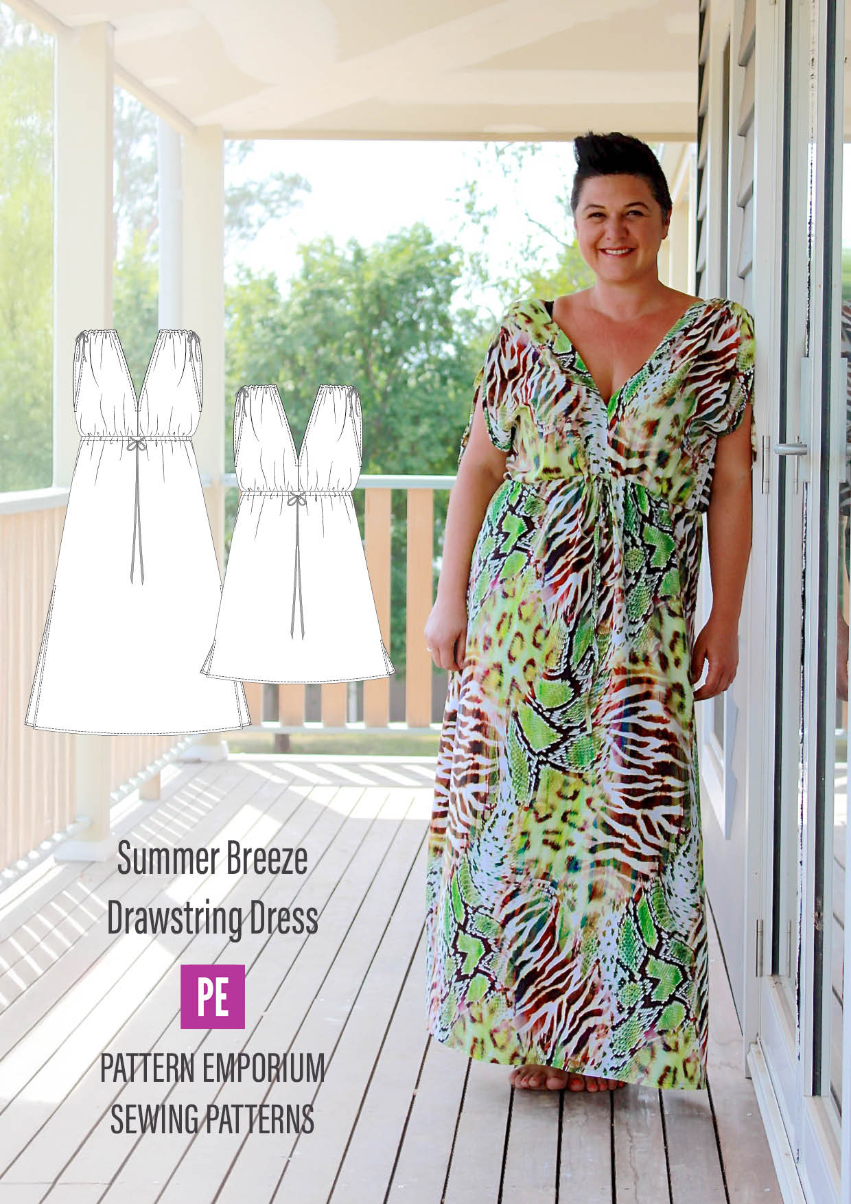 Designed for woven fabrics, the Summer Breeze Dress sewing pattern features a fabulous v-neck, drawstring waistline & soft feminine finish.